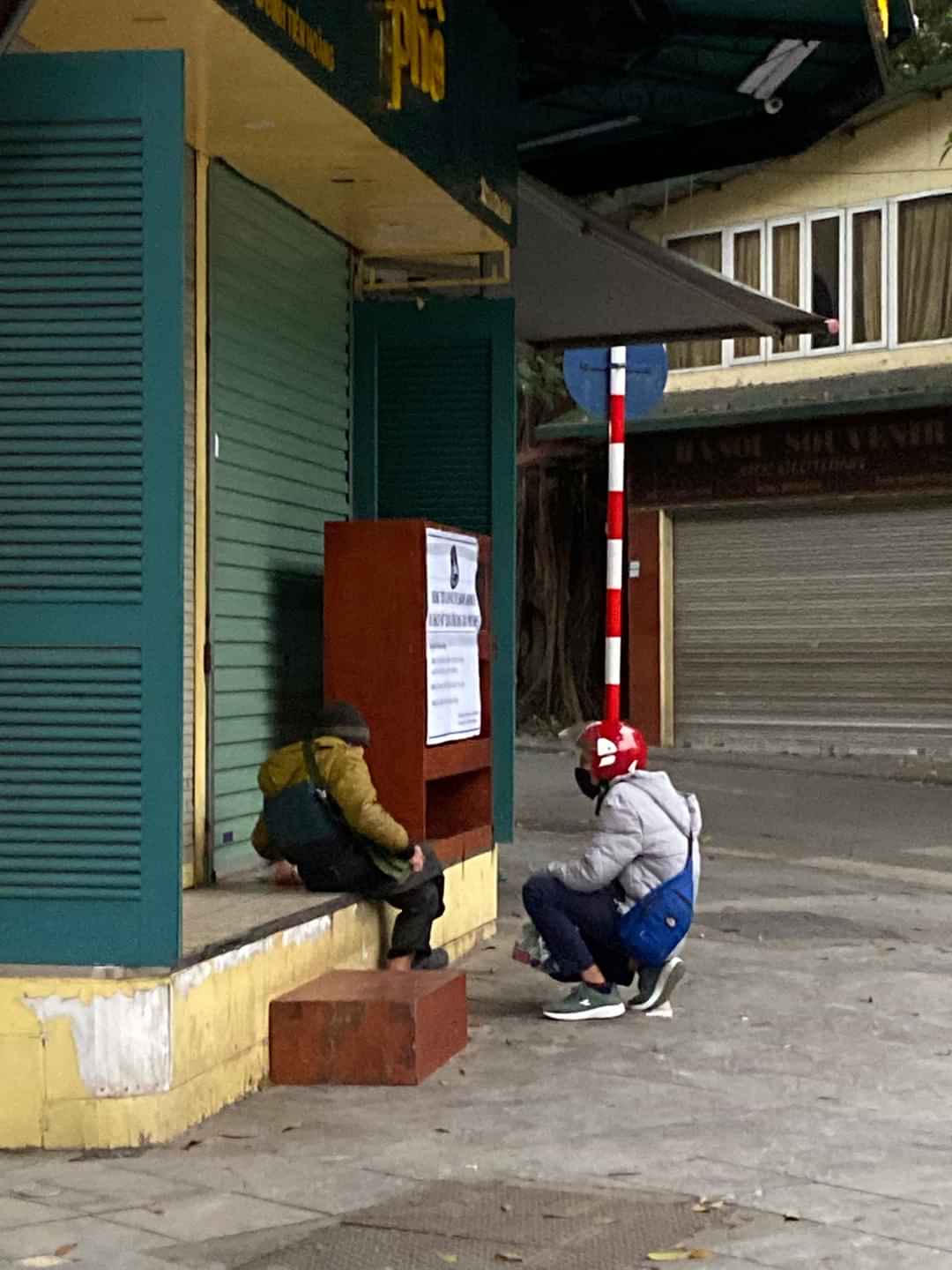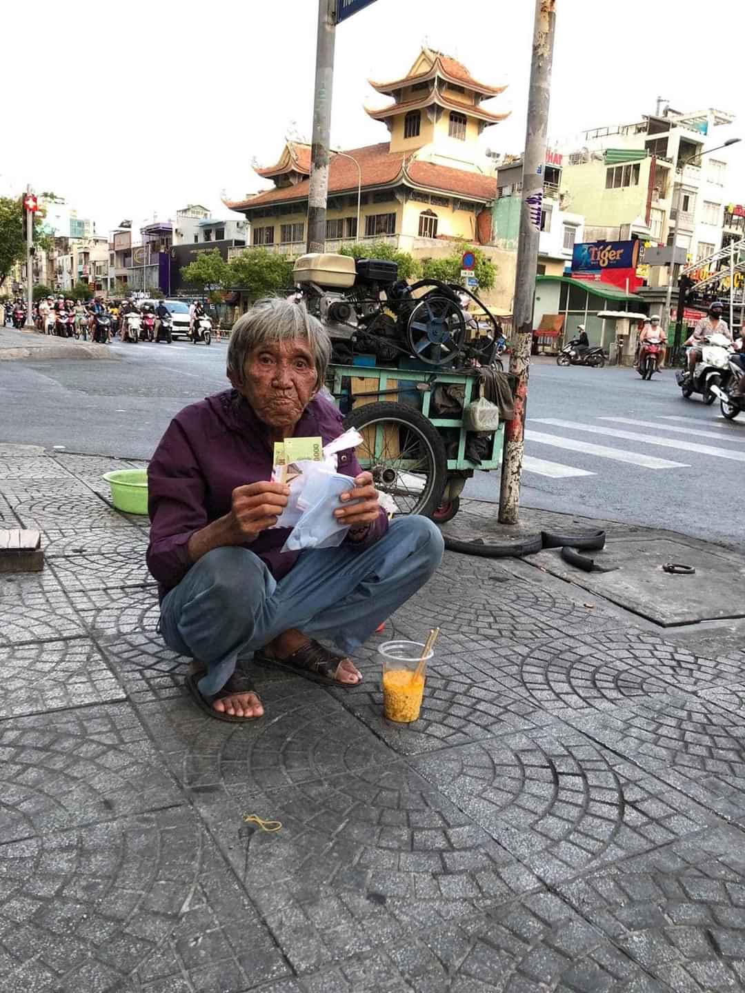 Mình hỏi đợt dịch bệnh này đời sống của ông có bị ảnh hưởng không. Ông bảo: “Ảnh hưởng nhiều chứ chị. Trước thì cũng có nhiều người đi phát đồ từ thiện nhưng từ sau Tết đến giờ, người ta cũng sợ”. Rồi ông thẹn thùng: “Nói thật với chị và cháu, một tuần nay tôi chưa được bữa cơm nào”. Hỏi ông, vậy thì sống thế nào? “Nói thật với chị và cháu, các nhà họ ăn không hết thì mình ăn”, có lẽ ông cố tránh dùng từ ăn thừa. Mắt ông lấp lánh niềm vui chỉ vào túi bún trong chiếc túi nilon đỏ thường được dùng để đựng quà tết mà ông xách theo.