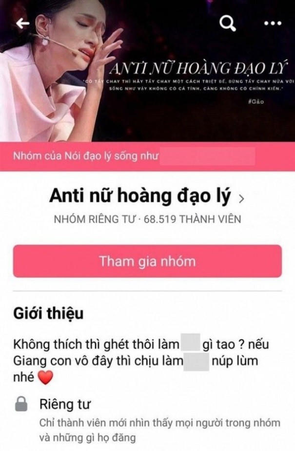 Sau khi Hương Giang lên tiếng, nhóm này đã bị khóa nhưng lại mở đường cho sự xuất hiện của nhiều nhóm anti khác. Hàng loạt hội, nhóm có liên quan với lượng người tham gia tăng mỗi ngày chỉ để “vạch lá tìm sâu” nói xấu Hương Giang từ những điều nhỏ nhặt nhất.