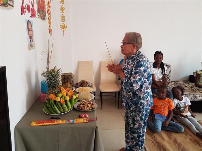 Thắp nén hương tưởng nhớ Chủ tịch Hồ Chí Minh, cụ Nguyễn Thị Luyến xúc động nói: “Cảm ơn các cháu đã cho bà cơ hội nhớ lại những ký ức của 70 năm về trước, cho bà được đón một cái tết truyền thống của dân tộc Việt Nam ngay tại Trung Phi, điều mà trước đây bà nghĩ có lẽ đến khi qua đời cũng bao giờ có được”.