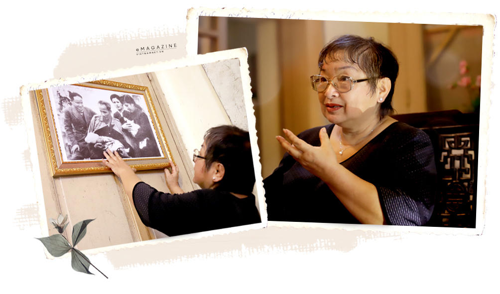 “Tôi sinh ra vào sáng sớm một ngày tháng 1/1949 nơi núi rừng Việt Bắc, trên chiến khu ATK Định Hóa”. Bà quay sang chỉ vào bức ảnh 6 người với Bác Hồ làm trung tâm và cho biết công việc kháng chiến bận rộn, lại gần đến Tết nhưng khi bà được sinh ra, Bác vẫn đến thăm và hứa đầy tháng tuổi Bác sẽ đặt tên cho.