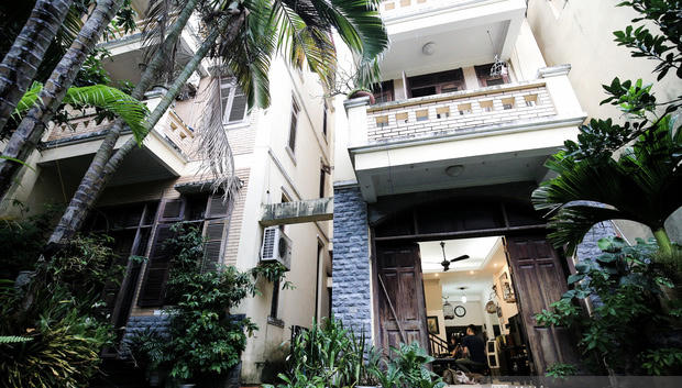 Căn nhà trên phố Kim Mã của gia đình NSND Hoàng Dũng có một khoảng sân thông với 2 căn nhà khác với nhiều cây xanh. Ngôi nhà được thiết kế theo lối kiến trúc xưa, pha trộn nét cổ kính, rêu phong với nhiều cây xanh.