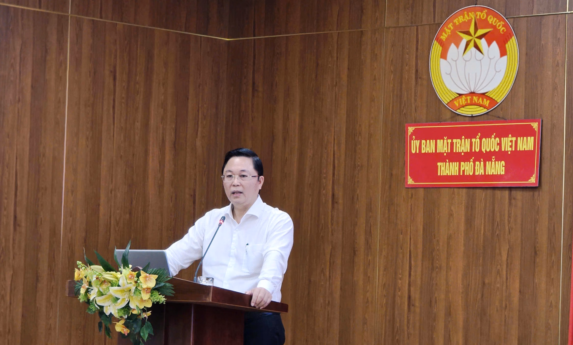 Chủ tịch Ủy ban MTTQ Việt Nam TP Đà Nẵng Lê Trí Thanh phát biểu tại hội nghị.