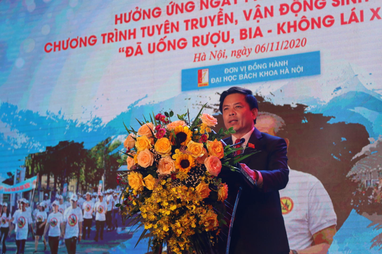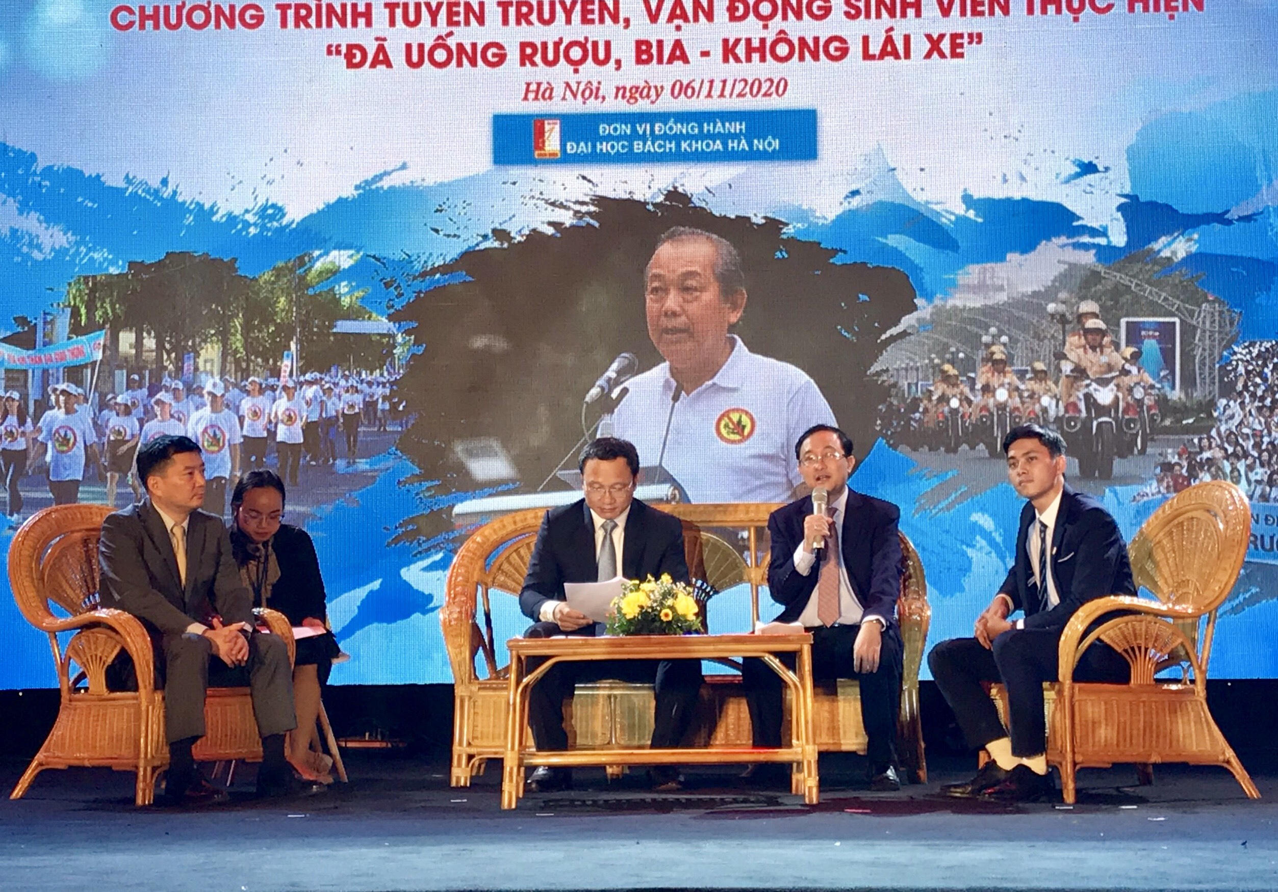 Tối 6/11, trong khuôn viên Trường Đại học Bách khoa Hà Nội, Ủy ban An toàn giao thông quốc gia phối hợp với Bộ Tư pháp, Bộ Giáo dục và Đào tạo tổ chức Lễ mít tinh hưởng ứng Ngày Pháp luật Việt Nam và Chương trình tuyên truyền, vận động sinh viên thực hiện “Đã uống rượu, bia không lái xe” với sự đồng hành của Hiệp hội các nhà sản xuất xe máy Việt Nam (VAMM).