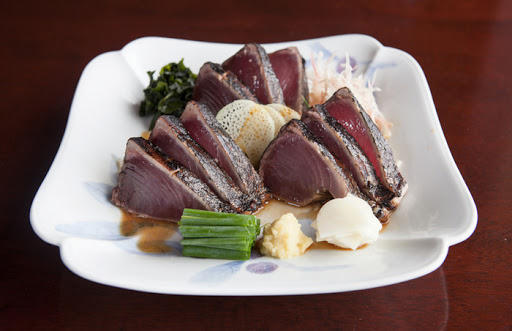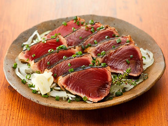 (PLVN) - Katsuo-no-tataki hay còn gọi là cá ngừ vằn được đánh bắt phổ biến ở các vùng như Shizuoka, Miyazaki... Chúng gây ấn tượng ban đầu với phần thịt màu đỏ ửng cùng lớp da rất mỏng. Món ăn này được đánh giá cao khi kết hợp cùng với nước tương, tỏi tươi, chanh và wasabi rồi thưởng thức trực tiếp.