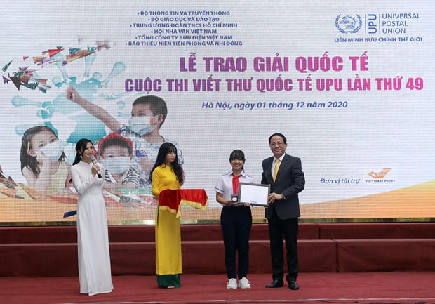 Giải Ba quốc tế cuộc thi Viết thư quốc tế UPU lần thứ 49 (năm 2020) cho em Phan Hoàng Phương Nhi (Lớp 7/2, trường THCS Duy Tân, TP. Huế) - người đã đoạt giải Nhất quốc gia. Đây là lần thứ 15 học sinh Việt Nam đoạt giải quốc tế sau 32 năm tham gia.