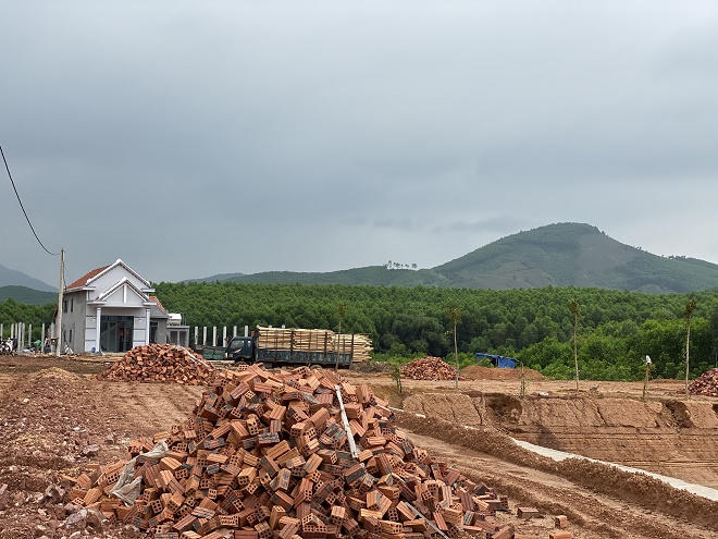 Nằm bên con đường nhựa đi vào “biệt phủ”, bao quanh giữa rừng keo cũng đang “mọc” lên một công trình nhà ở gia đình, với quy mô xây dựng 2 tầng. Đoạn đường rộng 5,5m, nối từ QL14H vào đến cổng trang trại, mới đây đã được thảm nhựa lại.