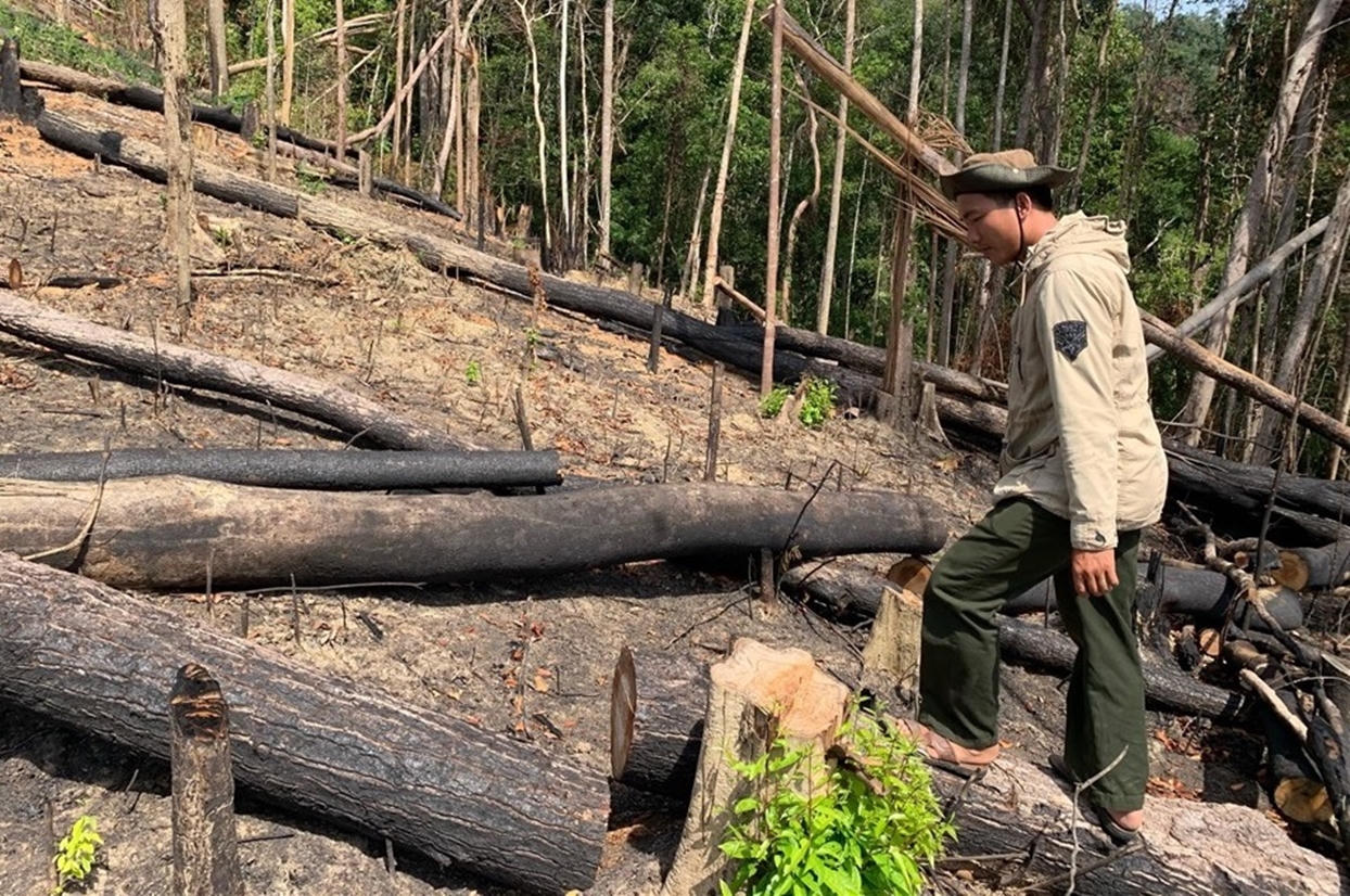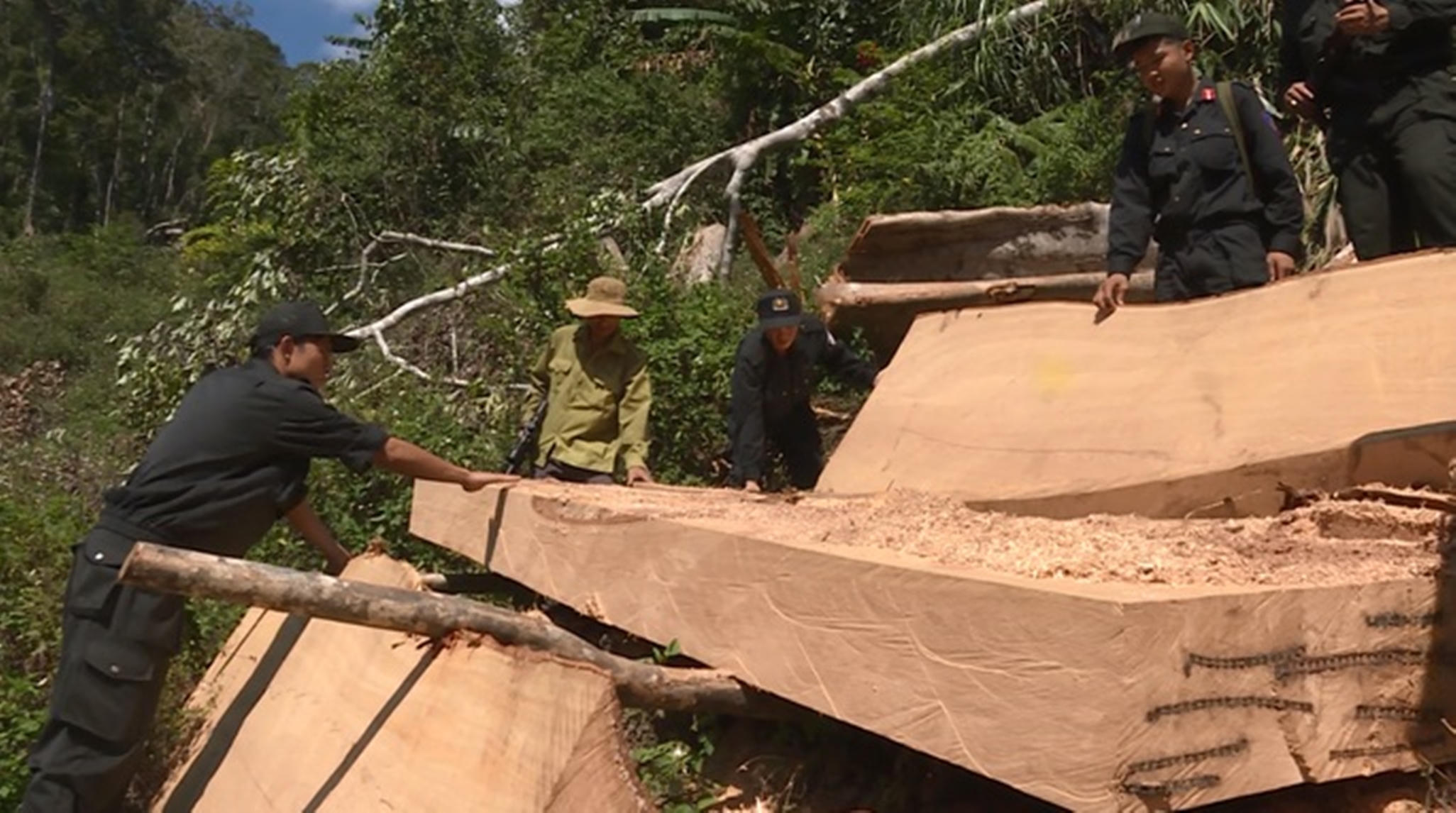 Tiếp đó, ngày 18/8/2019, sau nhiều tháng mật phục theo dõi, lực lượng Công an tỉnh Đắk Lắk vây bắt quả tang 4 đối tượng, gồm: Hoàng Văn Năm (32 tuổi), Ngô Văn Nam (35 tuổi), Hoàng Văn Nam (35 tuổi) và Phùng Văn Hội (24 tuổi, cùng ngụ thôn 15, xã Cư Yang) đang có hành vi khai thác 6 cây gỗ, với tổng khối lượng 27,584m3 trái phép tại Tiểu khu 692 (thuộc thôn 15). Đáng nói, Hoàng Văn Năm chính là Trưởng thôn 15.