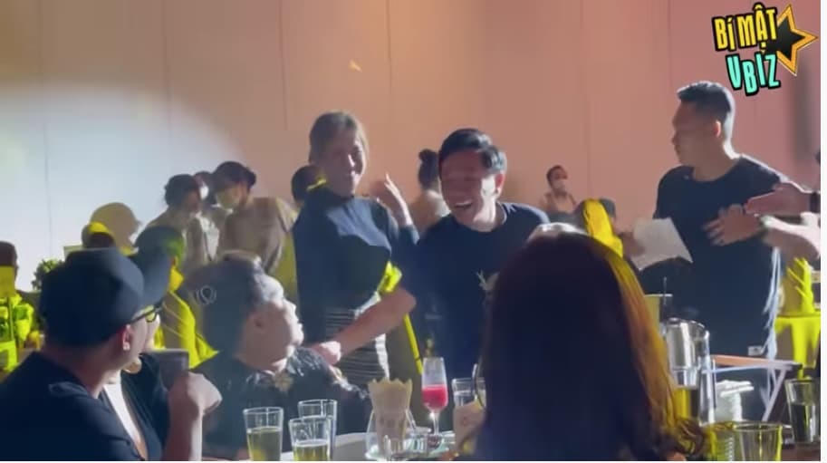 Lần đầu xuất hiện cùng nhau, bạn gái Anh Đức rạng rỡ khi bước đi bên cạnh người yêu. Đặc biệt, trong khi anh đang trò chuyện với 1 nhóm bạn khác thì bạn gái đã quay sang lễ phép gật đầu chào NSND Ngọc Giàu và nghệ sĩ Lê Giang.