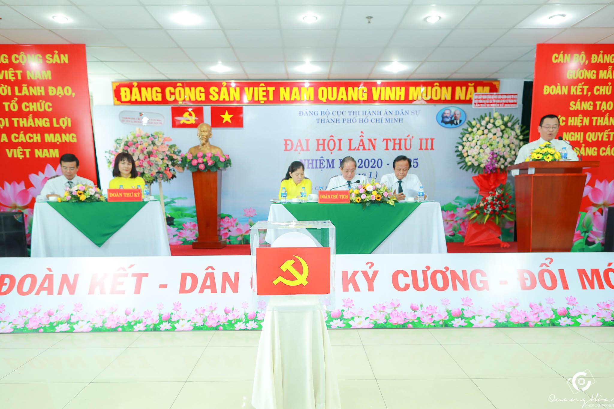 (PLVN) -Thực hiện Chỉ thị số 35-CT/TW ngày 30/5/2019 của Bộ Chính trị về Đại hội đảng các cấp tiến tới Đại hội đại biểu toàn quốc lần thứ XIII của Đảng và Kế hoạch số 171 ngày 26/11/2019 của Ban thường vụ Đảng ủy khối về chuẩn bị và tiến hành Đại hội Đảng bộ, Chi bộ cơ sở nhiệm kỳ 2020-2025, được sự chấp thuận của Đảng ủy khối Dân-Chính-Đảng thành phố. Ngày 27.6.2020, Đảng bộ Cục Thi hành án dân sự (THADS) Thành phố Hồ Chí Minh long trọng tổ chức Đại hội lần thứ III, nhiệm kỳ 2020 - 2025.