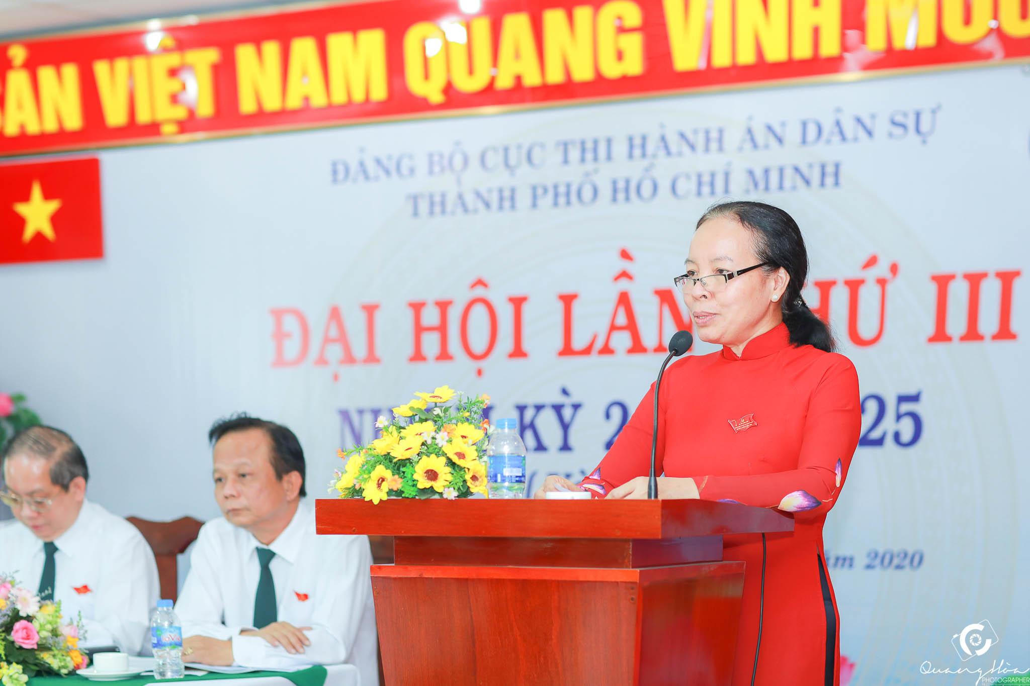 Phát biểu chỉ đạo Đại hội Ủy viên Ban Thường vụ, Trưởng Tổ chức Đảng ủy khối Dân - Chính - Đảng TP.HCM - Nguyễn Thị Hương đã ghi nhận và biểu dương những nỗ lực cố gắng, đoàn kết vượt qua khó khăn của Đảng bộ Cục Thi hành án dân sự thành phố trong 05 năm qua và đồng chí cũng chỉ ra những hạn chế, khuyết điểm trong quá trình lãnh đạo thực hiện Nghị quyết Đại hội Đảng bộ nhiệm kỳ II (2015-1020) đạt được trong nhiệm kỳ 2020 – 2025. Đồng chí yêu cầu Ban chấp hành Đảng ủy khóa mới tiếp tục phát huy những kết quả đạt được, nghiêm túc khắc phục những tồn tại hạn chế để phấn đấu thực hiện tốt những mục tiêu, phương hướng, nhiệm vụ và giải pháp nhiệm kỳ 2020 – 2025.