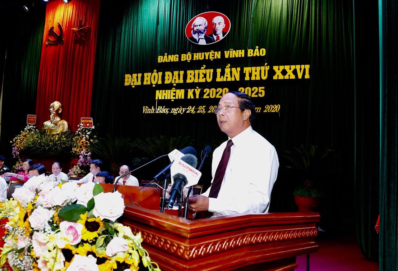 Phát biểu chỉ đạo tại đại hội, Bí thư Thành ủy, Chủ tịch HĐND TP Lê Văn Thành ghi nhận và biểu dương những kết quả to lớn, toàn diện trên mọi lĩnh vực của Đảng bộ, chính quyền, nhân dân huyện Vĩnh Bảo đã đạt được trong nhiệm kỳ 2015-2020. Đồng chí nhấn mạnh kết cấu hạ tầng giao thông của Vĩnh Bảo đã có nhiều bước phát triển đột phá, tạo động lực cho sự phát triển kinh tế xã hội tại vùng đất là cửa ngõ giao thương phía Tây Nam của TP. Nhiều dự án kết nối giao thông được đồng bộ góp phần giúp huyện Vĩnh Bảo bước vào thời kỳ phát triển mới, hòa chung sự phát triển của TP.