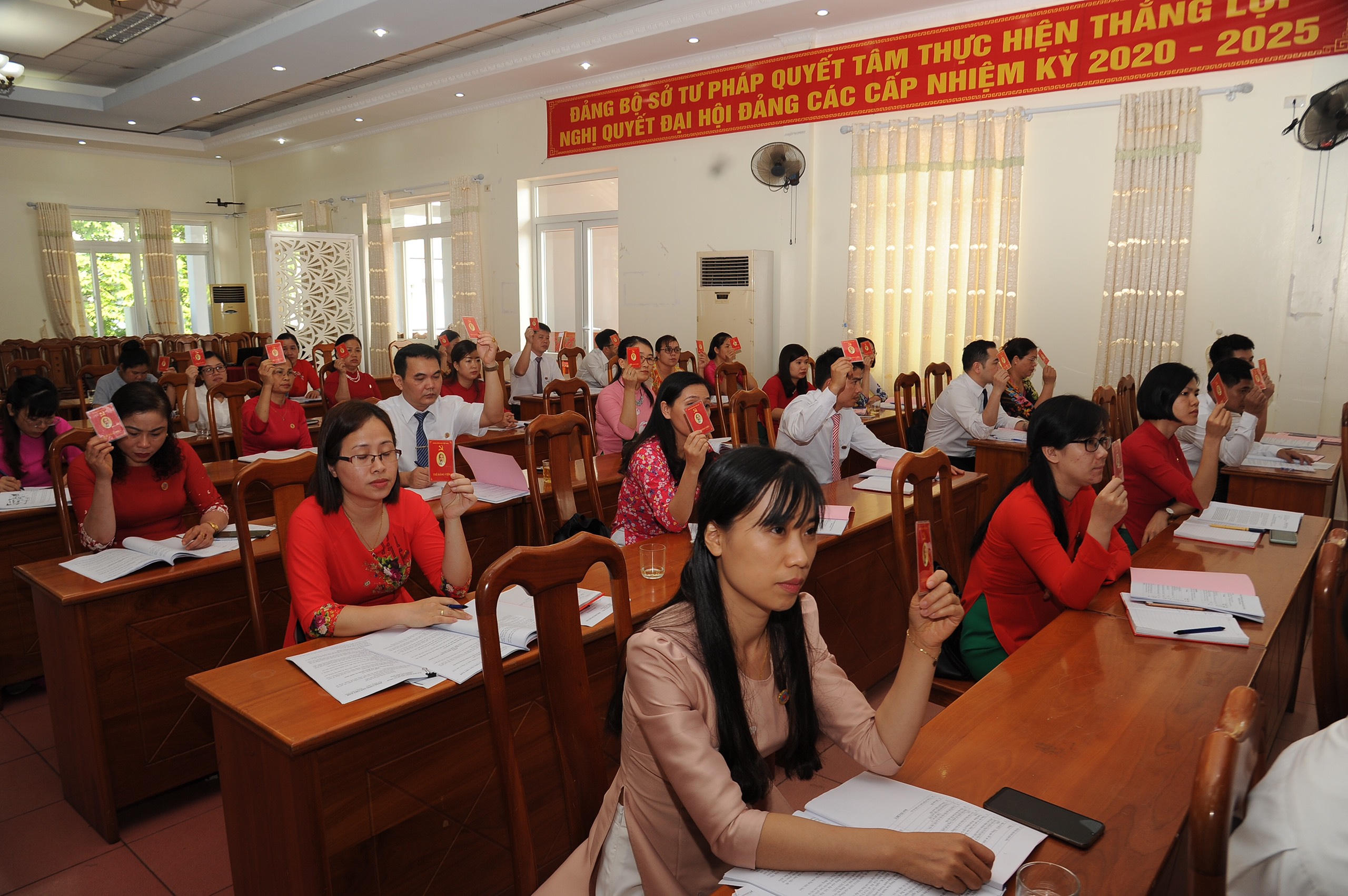Đại hội đã thảo luận và biểu quyết thông qua: Báo cáo chính trị của Ban Chấp hành Đảng bộ Sở Tư pháp nhiệm kỳ 2015- 2020 trình Đại hội; Báo cáo kiểm điểm của Ban Chấp hành Đảng bộ nhiệm kỳ 2015 - 2020; Báo cáo tổng hợp ý kiến góp ý các dự thảo văn kiện của Trung ương và cấp trên trực tiếp từ đại hội Các chi bộ trực thuộc với tinh thần thẳng thắn, khách quan.