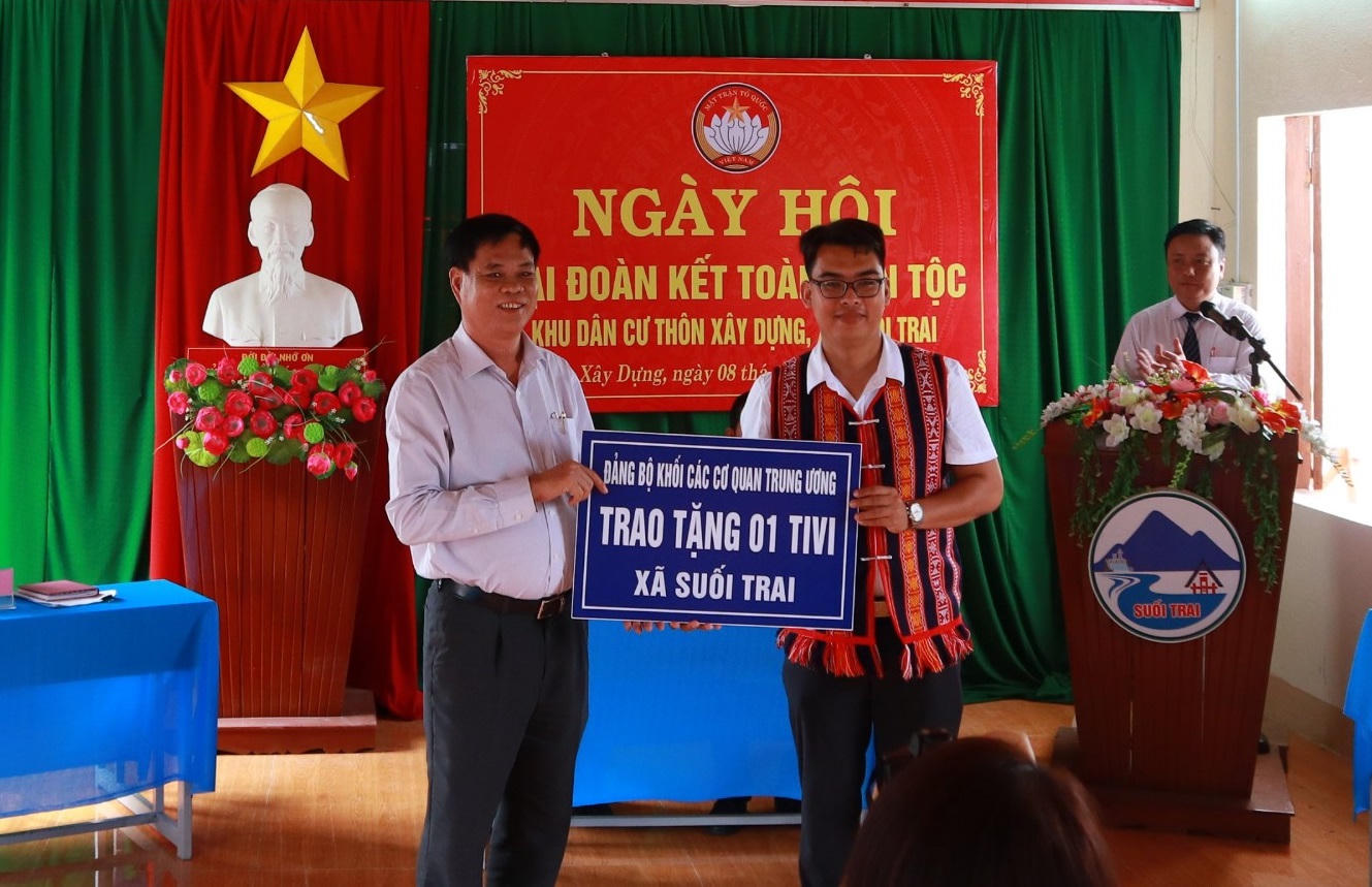 Đoàn công tác của Đảng ủy Khối các cơ quan Trung ương cũng tặng 1 ti vi trị giá 11 triệu đồng cho xã Suối Trai.