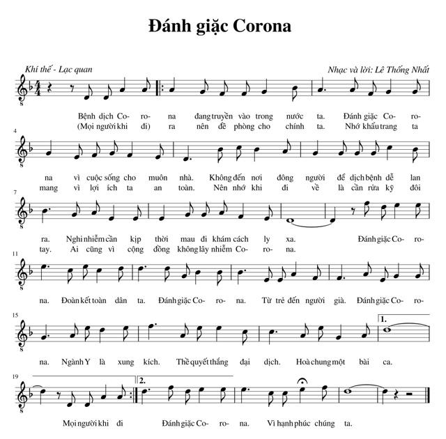 Tâm sự về ca khúc này, thầy giáo Lê Thống Nhất cho biết: “Đêm qua, một thầy giáo dạy Toán ở Trường THPT Tĩnh Gia 3, Thanh Hoá gửi cho mình bài vè “Phòng dịch Corona”. Ngủ dậy là nghĩ ngay đến việc viết một ca khúc để có một cách nói bằng âm nhạc truyền thông cho chiến dịch “Đánh giặc Corona”.