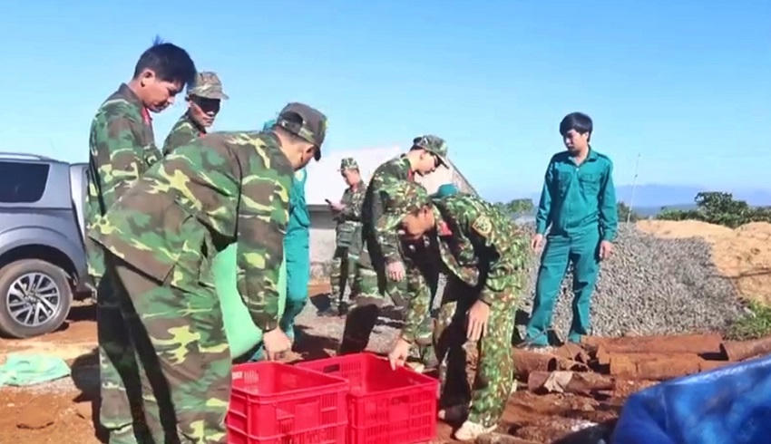 (PLVN) - Ban Chỉ huy quân sự huyện Di Linh (Lâm Đồng) phối hợp với Đại đội công binh (Phòng tham mưu Bộ CHQS tỉnh Lâm Đồng) mới tổ chức thu gom, vận chuyển gần 1 tấn bom, mìn, đạn dược và vật liệu nổ mang đi tiêu hủy thành công tại khu vực đất quốc phòng tại xã Gung Ré.