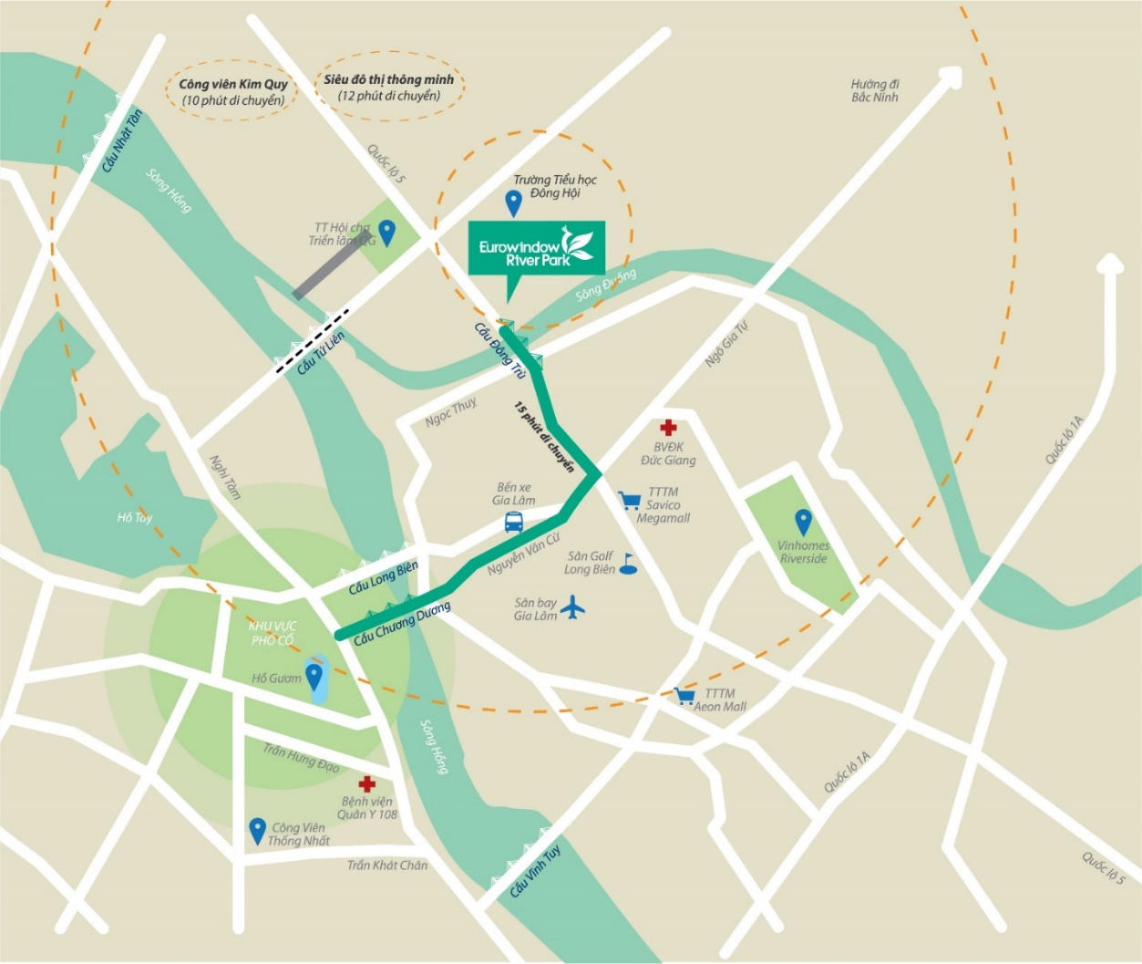 Sở hữu vị trí ngay tại lõi trung tâm khu vực Đông Bắc thủ đô, tâm điểm kết nối với các “siêu dự án quy hoạch” trong tương lai như: cầu Tứ Liên, Trung tâm hội chợ, công viên Kim Quy…, Eurowindow River Park được đánh giá là sản phẩm hiếm hoi, hứa hẹn là kênh đầu tư mang lại giá trị lợi nhuận vượt trội cho giới kinh doanh bất động sản.