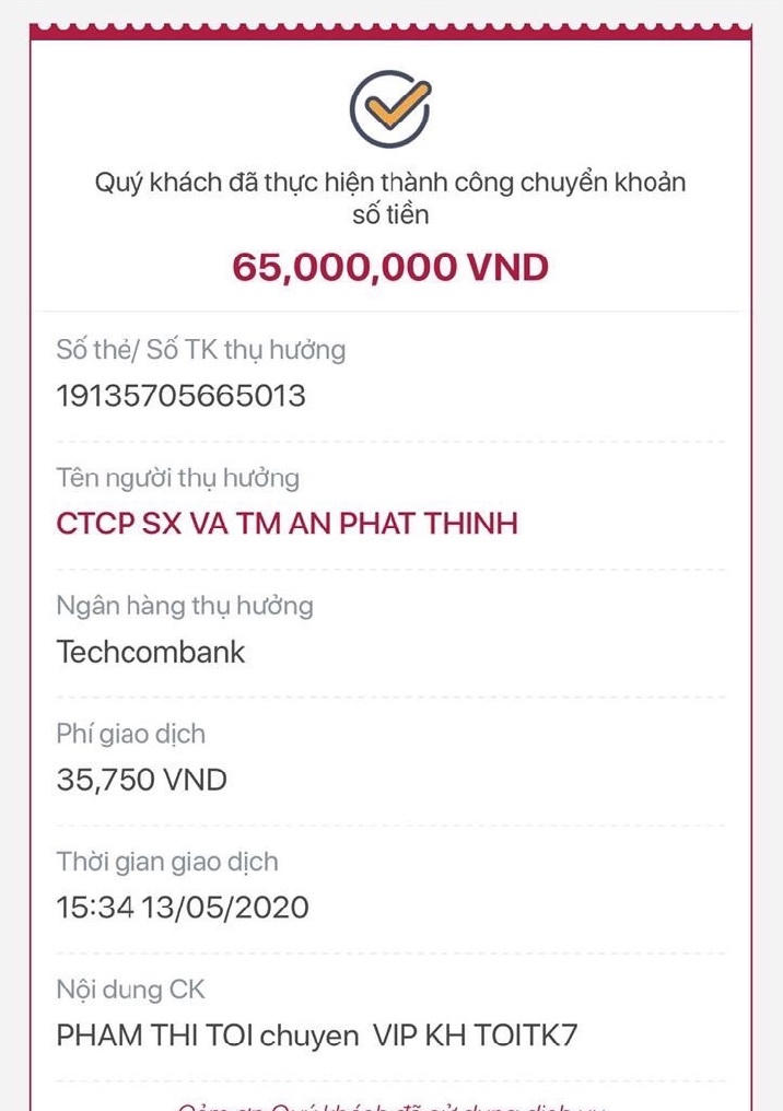 Theo tìm hiểu của phóng viên, do nhẹ dạ cả tin vào chính sách tri ân “nghìn năm có một” này, từ tháng 04/2020 đến nay đã có hàng nghìn người trong cả nước đầu tư vào sàn TMĐT đa cấp của của công ty An Phát Thịnh với số tiền lên tới hàng chục tỷ đồng. Tuy nhiên, sau khi khách hàng chuyển tiền đầu tư thì Công ty An Phát Thịnh đã không tặng quà, không trả sản phẩm và tri ân theo như cam kết.