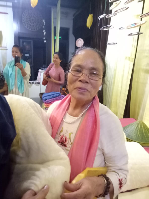 Bên cạnh tấm lòng đau đáu với nghiệp canh cửi, tằm tơ, bà Thuận còn được biết đến là con người “nặng lòng với sợi tơ sen”.