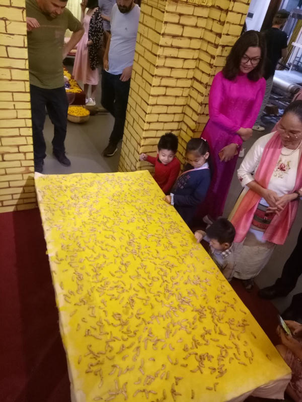 (PLVN) - Bà Thuận ôm tấm chăn của những “thợ dệt” tằm vào lòng, trào dâng hạnh phúc khi những con tằm đã biết ngóc đầu tự rút ruột nhả tơ trên một mặt phẳng theo sự sắp đặt. “Tôi đã làm được sản phẩm tơ tằm từ việc dùng con tằm là những người thợ dệt. Tôi tin nghề có thể tồn tại, vì thế quyết định tìm lối đi mới cho nghề. Tôi nghĩ làm sản phẩm do con tằm tự dệt là hướng đi rất tốt cho tơ tằm”, bà Thuận nói.