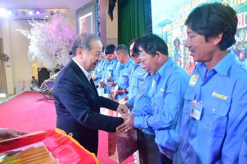Ông Thọ trao xe xích lô cho đoàn viên nghiệp đoàn xích lô có hoàn cảnh khó khăn