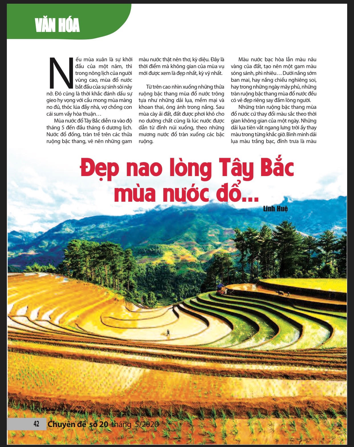 Mùa đổ nước chỉ là một mùa trong năm của khung thời vụ trên những ruộng bậc thang, bắt đầu của một vụ mới, bắt đầu của niềm tin và hy vọng về sự no ấm đủ đầy. Không chỉ những du khách từ xa đến mới đắm say vì sức hấp dẫn “chết người” của những tràn ruộng bậc thang mà ngay cả những người dân nơi đây, dù quanh năm quen thuộc với ruộng nương, bùn đất, dù năm nào cũng phơi ải, rồi dẫn nước về tràn ruộng nhưng vẫn không thể rời mắt bởi vẻ đẹp hoang sơ mà tuyệt mĩ của bản làng…