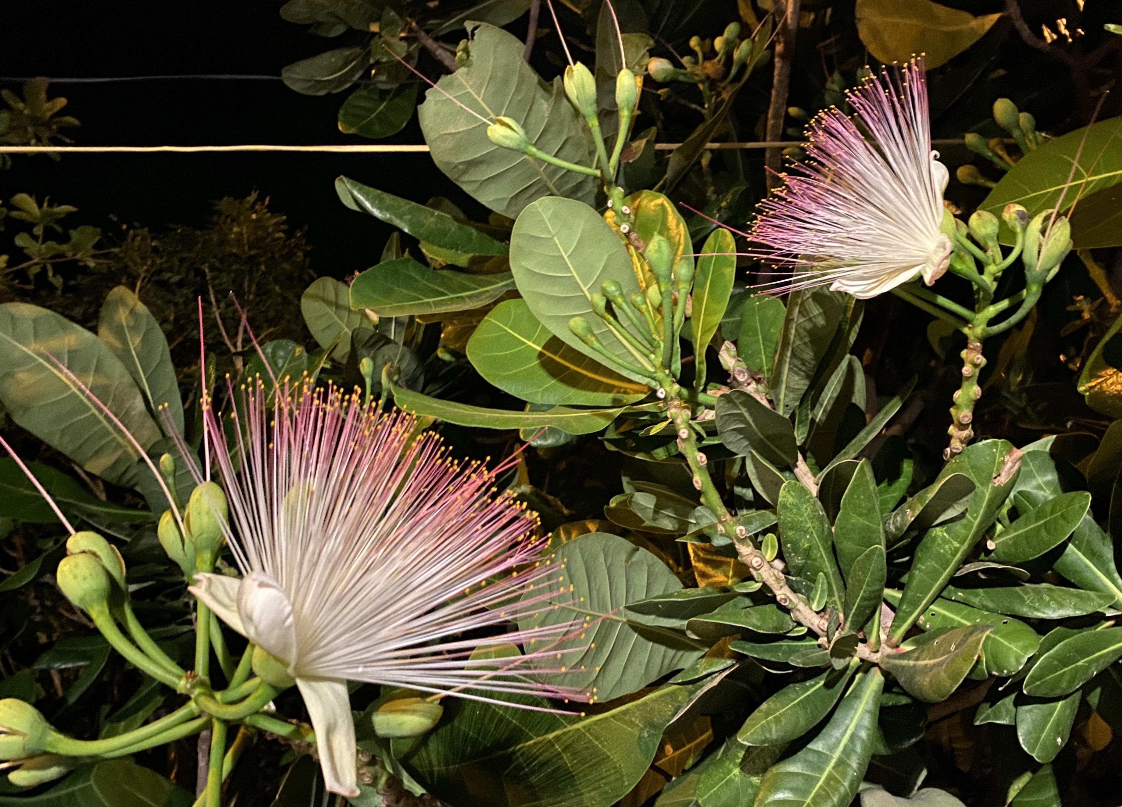 Được mệnh danh là “vũ nữ của biển cả”, hoa bàng vuông chỉ nở vào ban đêm, từ từ từng cánh vươn mình bật ra khỏi đài hoa, nhụy hoa khi nở bung màu trắng, dần hướng ra đầu chuyển sang tím biếc. Với bà con biển đảo, hoa bàng vuông nở báo hiệu mùa xuân đến; là niềm vui khi ngồi dưới cây ngắm nhìn hoa nở vào những hôm sáng trăng; là hạnh phúc vì được chiêm ngưỡng vẻ đẹp thiên nhiên hiếm có làm ấm lòng nhiều người nơi đầu sóng ngọn gió.