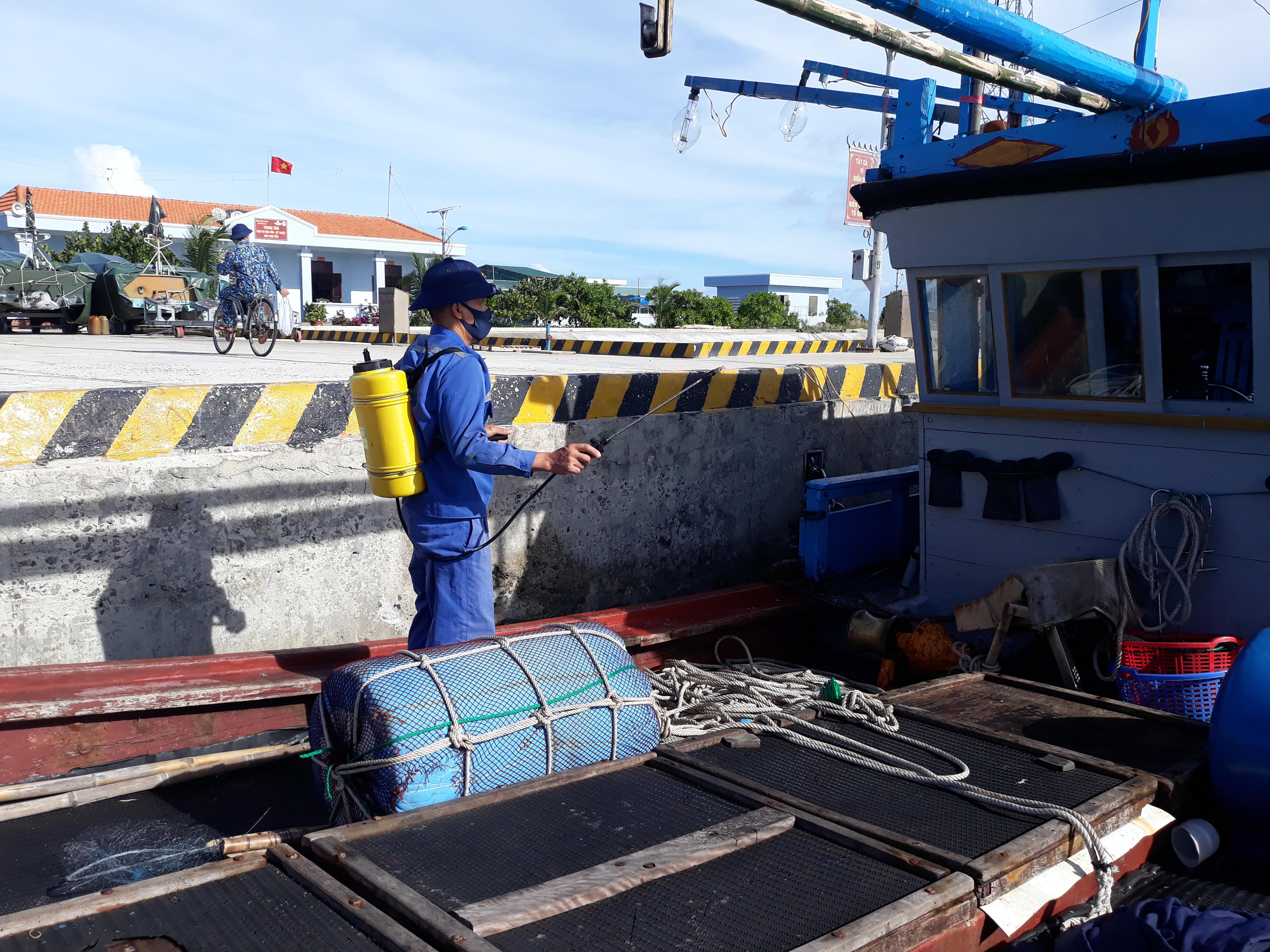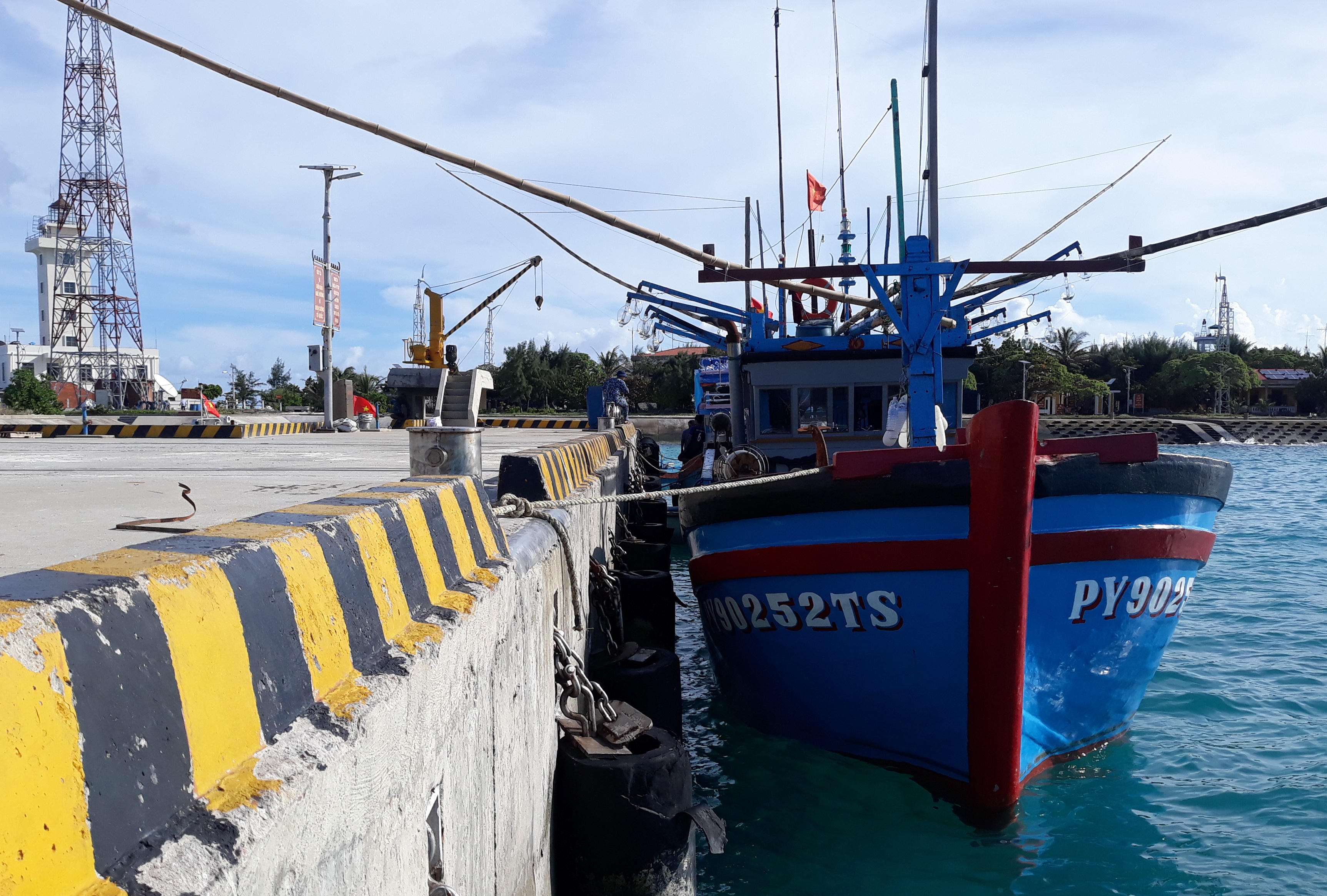 Được sự hướng dẫn kịp thời của chỉ huy Trung tâm HC-KT đảo Sinh Tồn, khoảng 15h cùng ngày, tàu cá PY 90252 TS cơ động tiến về Âu tàu neo đậu an toàn. Trung tâm nắm thông tin thời gian xuất bến, cử lực lượng xuống phun khử trùng, kiểm tra thân nhiệt sau đó triển khai đội ngũ cán bộ, nhân viên kỹ thuật và thợ sửa chữa có kinh nghiệm để kiểm tra tình trạng máy móc.
