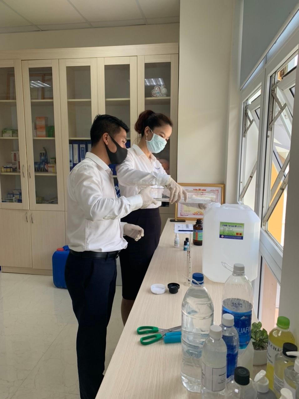 Nhân viên Công ty là chị Đoàn Thị Nga và anh Phạm Nguyên Quang đã mạnh dạn nghiên cứu và thay thế cồn 96° bằng cồn y tế 90° với nồng độ cồn sau khi pha chế khoảng 75% - 80% (750 mg/l – 800 mg/l) đây là nồng độ được các tổ chức y tế khuyến nghị để đảm bảo diệt khuẩn tối ưu nhất khi sử dụng vì bốc hơi chậm và đủ thời gian diệt khuẩn, đồng thời bổ sung thêm hương liệu để pha chế dung dịch rửa tay sát khuẩn thân thiện với mọi người.