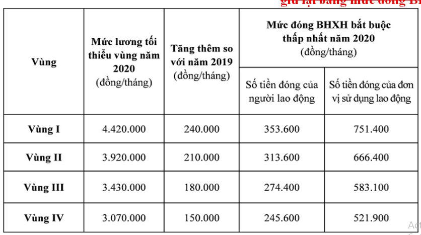 Do đó, đây là thông tin NLĐ cần quan tâm để nếu đang làm việc ở vùng nào mà có mức đóng BHXH bắt buộc dưới mức tương ứng nêu trên thì cần đề nghị DN điều chỉnh mức đóng đúng theo quy định.