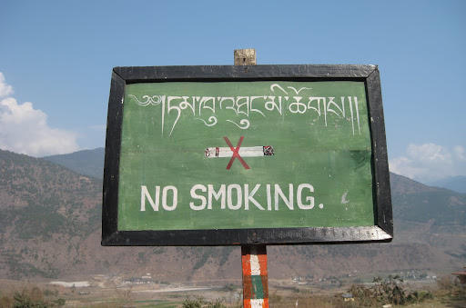 (PLVN) - Thuốc lá vẫn luôn là vấn nạn nghiêm trọng trên toàn cầu. Rất nhiều quốc gia trên thế giới đã ra lệnh cấm hút thuốc nhưng chưa có một quốc gia nào hành động một cách triệt để. Chỉ riêng Bhutan là quốc gia đầu tiên trên thế giới đưa ra một biện pháp mạnh để giữ gìn sức khỏe của dân chúng. Cho tới thời điểm hiện tại, Bhutan vẫn là quốc gia đầu tiên không còn khói thuốc.