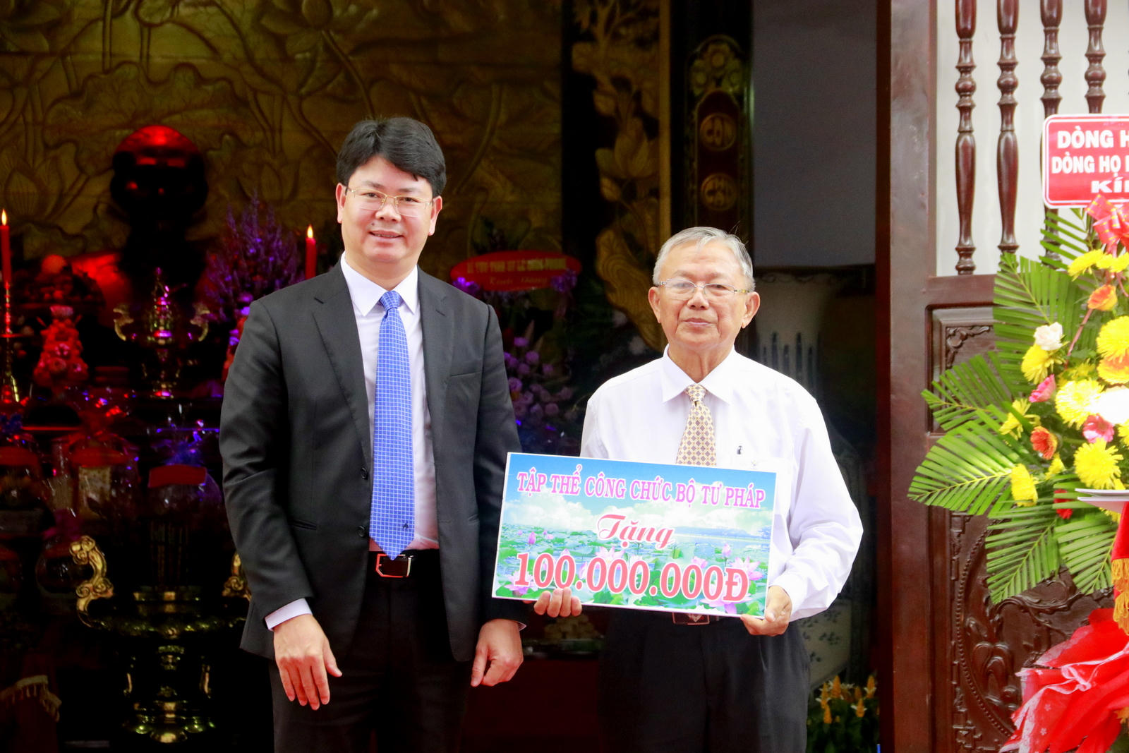 Noi gương cụ Phó Bảng, tỉnh Đồng Tháp đã vận động thành lập Quỹ Khuyến học Nguyễn Sinh Sắc để tiếp sức cho học sinh, sinh viên có động lực vươn lên trong học tập. Sau 10 năm thành lập và phát triển, Quỹ Khuyến học đã đóng góp rất lớn trong công tác khuyến học, khuyến tài của địa phương. Dịp này, Thứ trưởng Nguyễn Thanh Tịnh cũng thay mặt tập thể công chức Bộ Tư pháp trao tặng 100.000.000 đồng cho Qũy Khuyến học Nguyễn Sinh Sắc.