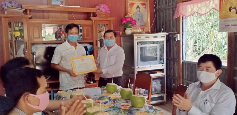 Ngày 28/3, ông Trần Thanh Hải - Trưởng phòng Văn hóa và Thông tin huyện Giồng Riềng (Kiên Giang) cho biết, chiều ngày 27/3, đoàn cán bộ của xã đã đến gia đình ông Trần Phước Triều, thuộc ấp Năm Chiến, xã Bàn Tân Định (Giồng Riềng, Kiên Giang) để trao Giấy khen đột xuất của xã cho gia đình ông Triều vì đã có thành tích, tự nguyện dời ngày tổ chức đám cưới con trai để góp phần phòng, chống dịch bệnh Covid-19.