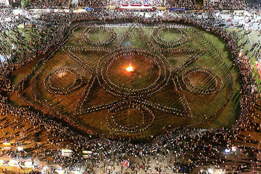 Chương trình nghệ thuật với chủ đề “Lung linh sắc màu Tây Bắc” trong vòng xòe đoàn kết với sự tham gia của trên 2.000 người tham gia. |