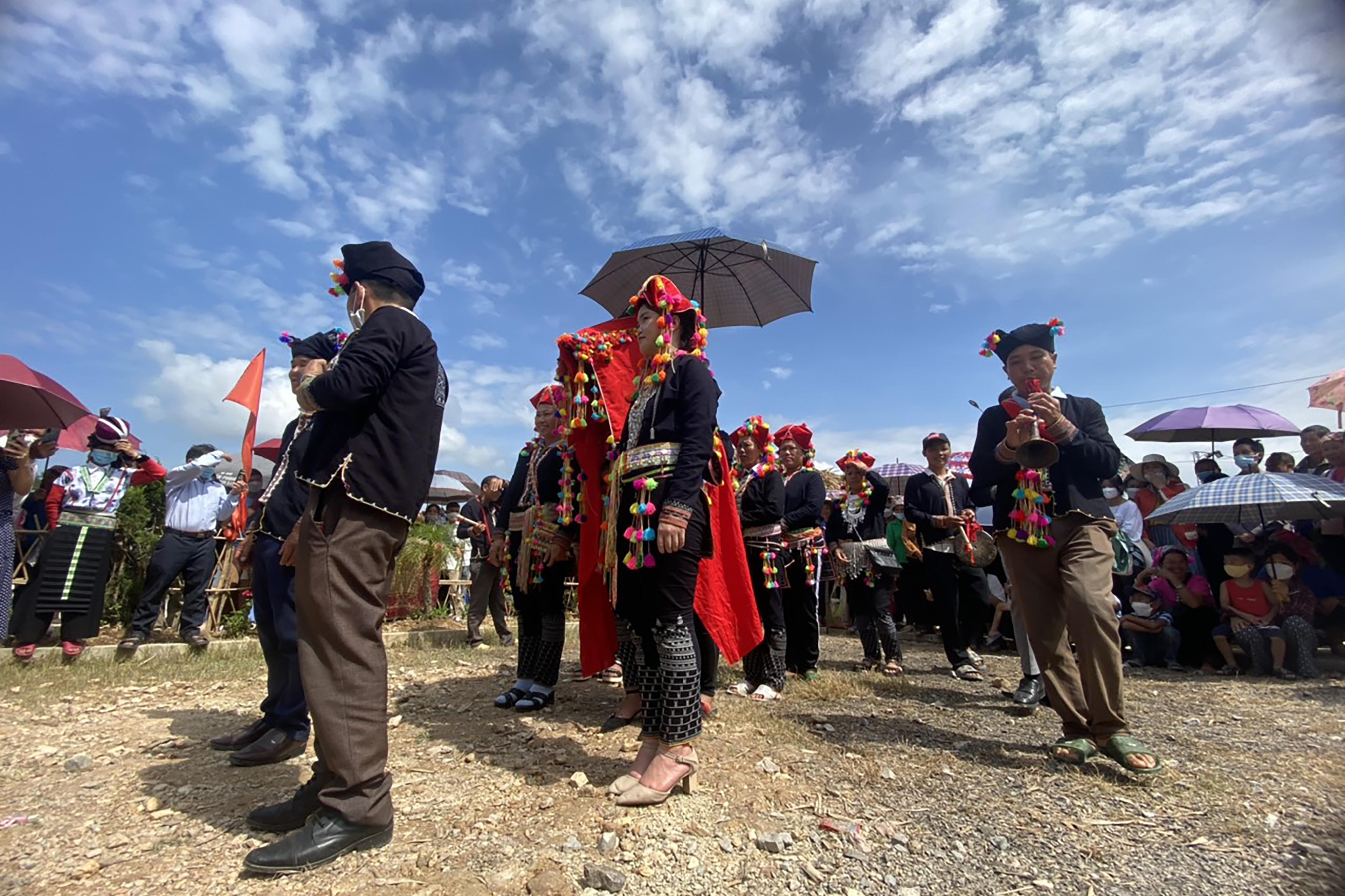Không gian văn hóa người Dao thu hút du khách thường thức những màn dân vũ uyển chuyển, những hoạt cảnh trong các trích đoạn Lễ rước dâu. |