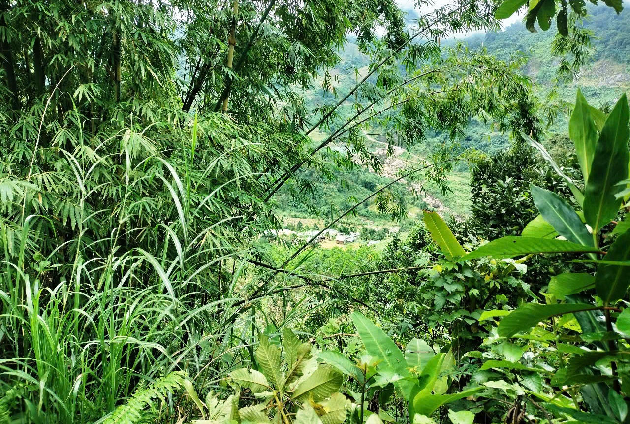 Làng Tu Hon thôn 3 xã Trà Don nhìn từ hiện trường sạt lở đá. |