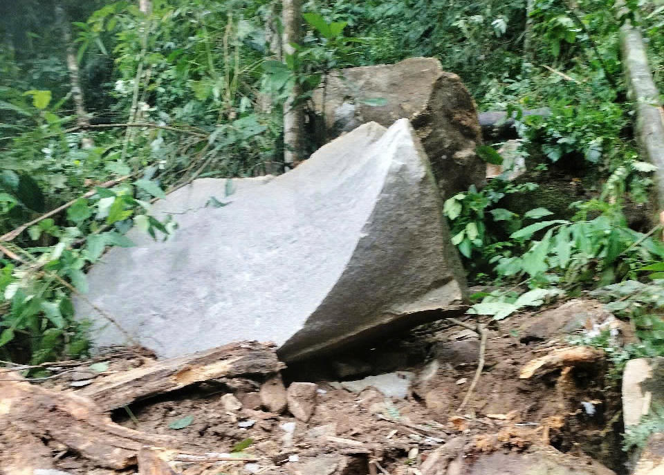 Một tảng đá rất lớn bị bể trong quá trình trượt lở. |