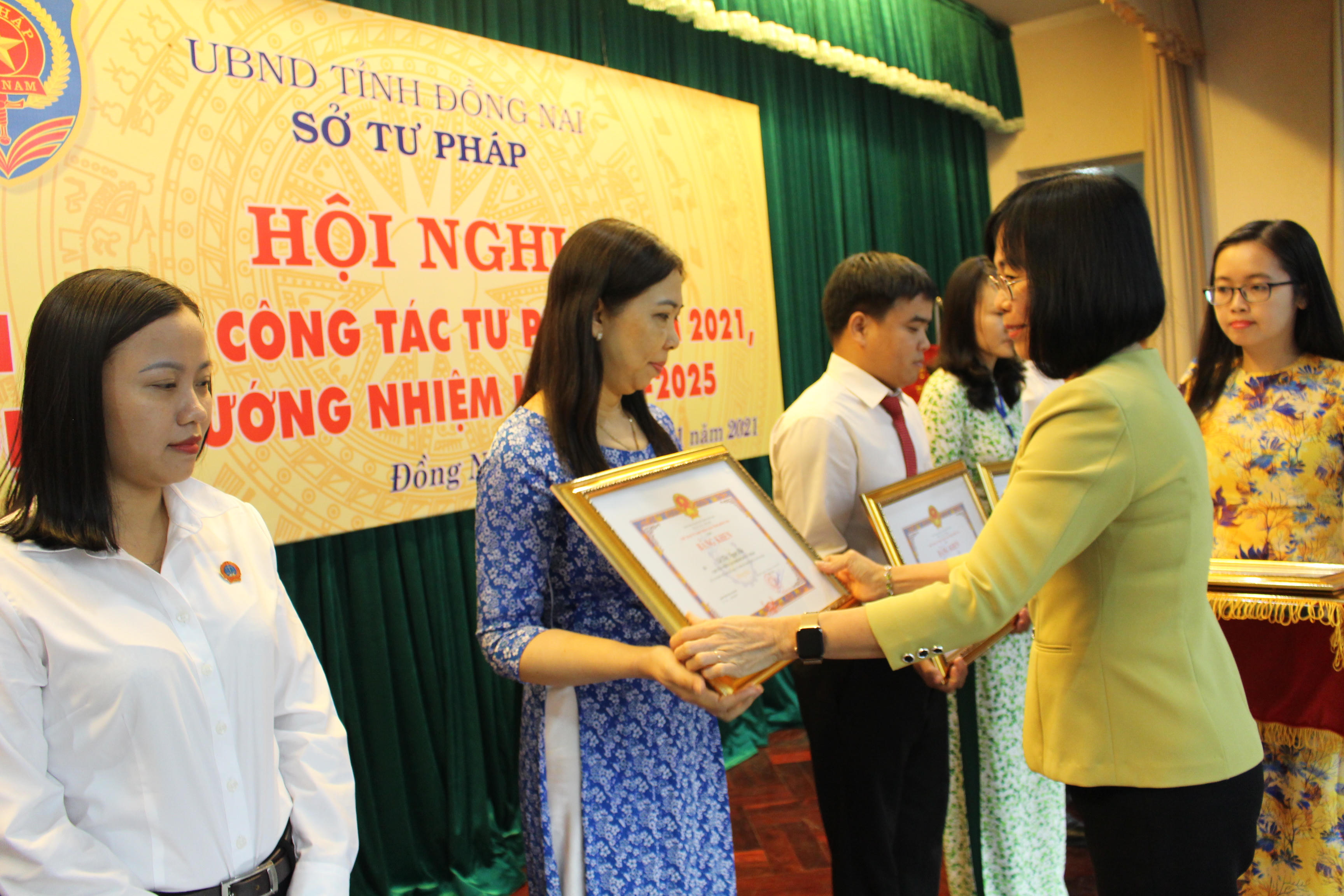 Tại hội nghị, nhiều tập thể, cá nhân có thành tích xuất sắc trong năm 2020, và thời gian qua trong tổng kết thi hành Luật Lý lịch tư pháp và Luật Công chứng và trao Kỷ niệm chương “Vì sự nghiệp Tư pháp” được đại diện UBND tỉnh Đồng Nai trao tặng bằng khen.