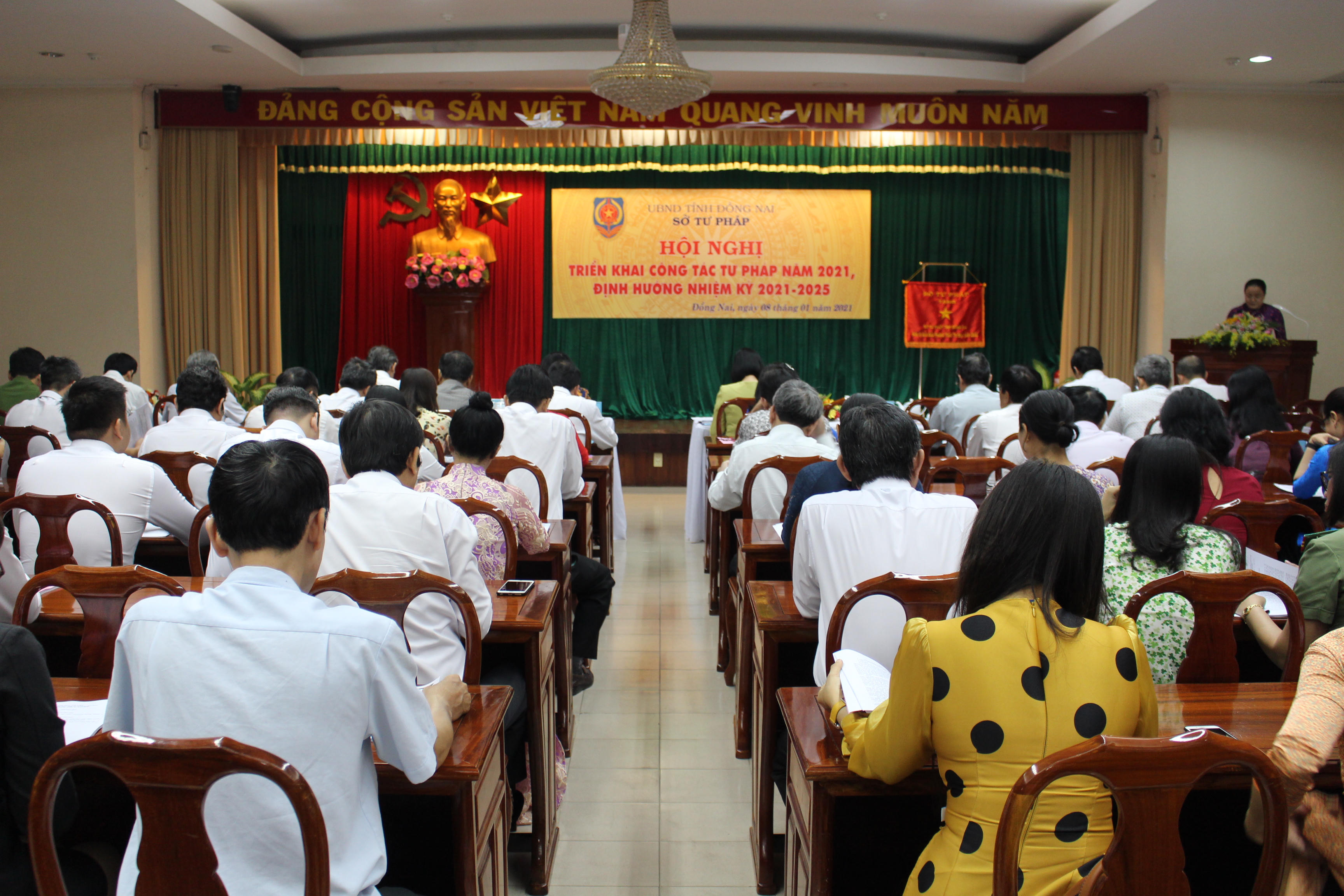 Phát biểu tại hội nghị, bà Nguyễn Thị Hoàng, Phó Chủ tịch UBND tỉnh Đồng Nai ghi nhận và biểu dương những kết quả đạt đã được của ngành Tư pháp trong năm 2020. Theo đó, Sở Tư pháp cũng đã được Bộ Tư pháp đánh giá hoàn thành xuất sắc các nhiệm vụ được giao, được nhận Cờ thi đua xuất sắc và xếp thứ 6 trong cả nước theo tiêu chí thi đua, thang điểm đánh giá của Bộ Tư pháp.
