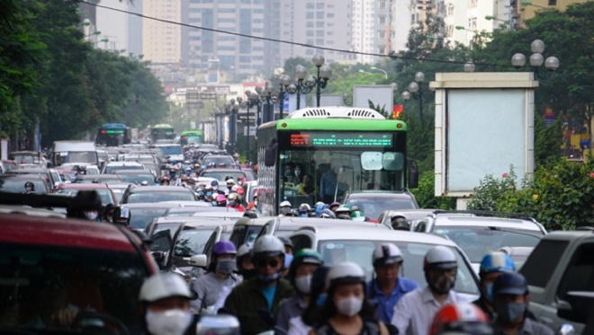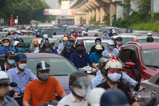 Trái ngược với những ngày cách ly xã hội, đường phố Hà Nội lại trở nên đông đúc. Hàng triệu học sinh, sinh viên quay trở lại trường khiến lượng phương tiện giao thông thủ đô tăng đột biến.
