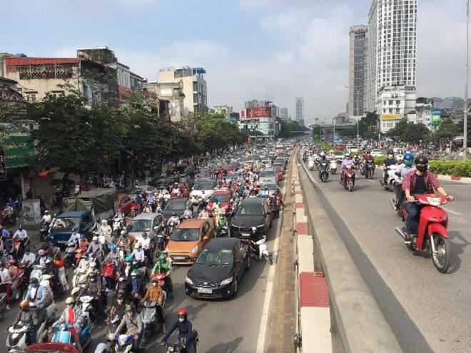 Tuyến đường Nguyễn Trãi xe cộ tấp nập từ sáng sớm. Ảnh Vietnamnet.