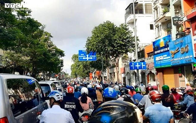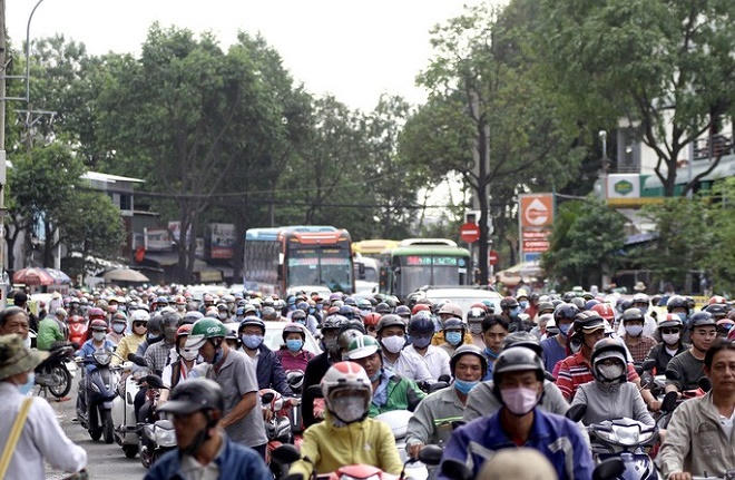 Trong sáng 4/5, nhiều tuyến đường lớn như Phạm Văn Đồng, đường Đinh Bộ Lĩnh, xa lộ Hà Nội... (TP HCM), cảnh ùn tắc kéo dài khi hàng ngàn phương tiện chen chúc nhau trên đường. Ảnh Người lao động.
