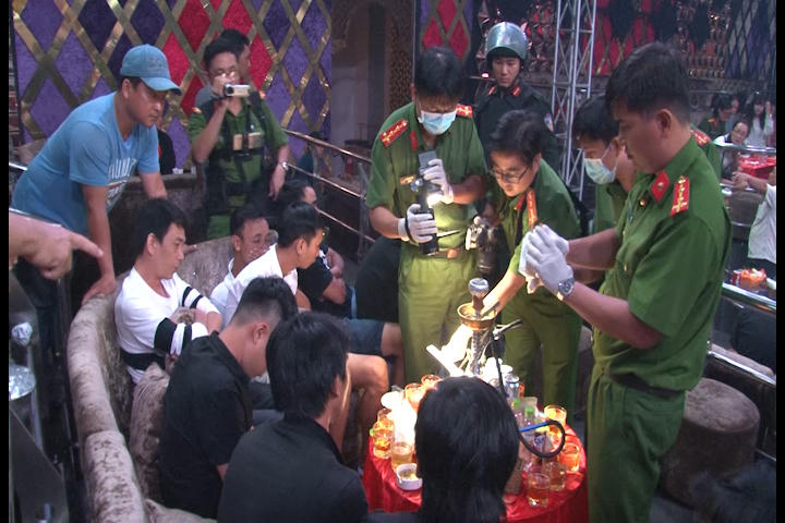 Khi phát hiện có Công an, các khách chơi ma túy đã tẩu tán vứt ma túy xuống sàn nhà, số khác định bỏ chạy nhưng không kịp thoát thân. Lực lượng Công an đã đưa về trụ sở 98 đối tượng cả nam lẫn nữ đều là thanh niên. Qua kiểm tra nồng độ ma túy, có 31 đối tượng (19 nam và 12 nữ) dương tính với loại ma túy tổng hợp.