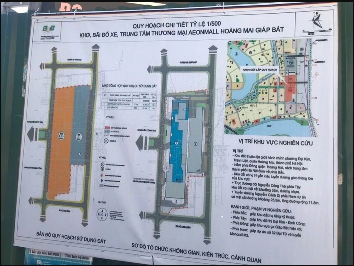 Vừa qua, UBND Thành phố Hà Nội đã trao giấy chứng nhận đầu tư cho Dự án Bãi đỗ xe, trung tâm thương mại Aoen Mall Hoàng Mai có diện tích đất nghiên cứu khoảng 60.639m2; Địa điểm xây dựng tại phường Đại Kim, quận Hoàng Mai; Tổng vốn đầu tư khoảng 6.508,83 tỷ đồng.