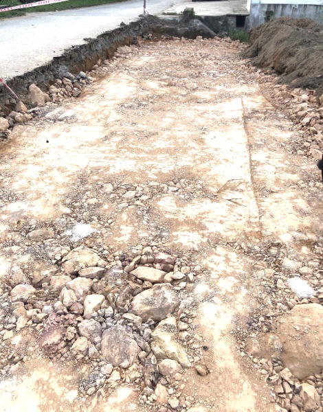 Quan sát tại công trường đang xây dựng Dự án TĐC, PV cũng ghi nhận một số đoạn đường đang đắp cho thấy những phản ánh của người dân là có cơ sở, khi nhiều rễ cây không được nhà thầu nhặt bỏ theo quy trình mà đã được lu luôn vào nền đất. Đá kích thước to cũng được nhà thầu cho lu lèn ngay trên nền đường tạo ra mặt nền nham nhở, không bằng phẳng, không đảm bảo về mặt kỹ thuật. Thậm chí, một số tài liệu mà PV thu thập cũng cho thấy, vật liệu mà nhà thầu đưa tới để thi công công trình cũng có vấn đề.