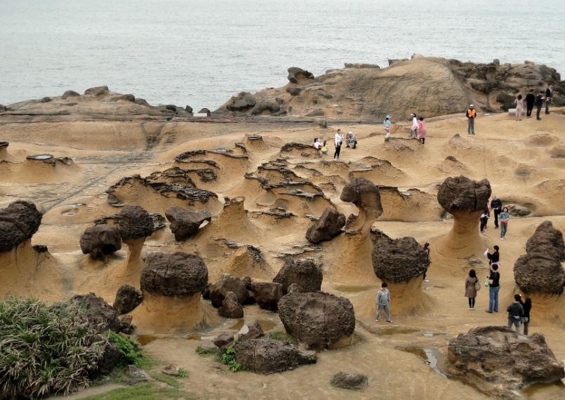 Công viên nổi tiếng với những tảng đá có hình thù kỳ lạ - là những kiệt tác điêu khắc nghệ thuật sinh động do thiên nhiên tạo ra. Các mỏm đá có tên gọi dựa vào hình dạng của nó, ví dụ như: Đầu Nữ Hoàng Đài Loan (Queen’s Head), Hài Tiên (Fairy’s Shoe), Đá Nấm (Mushroom Rock), Japanese Geisha, Đá Nến (Candle Rock),…