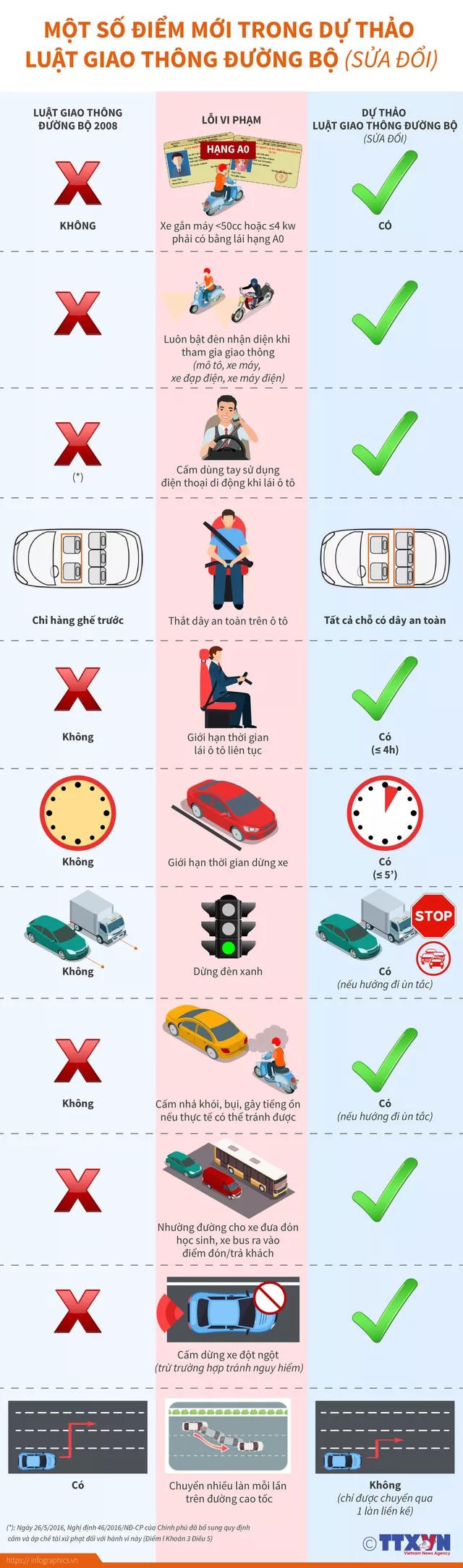 (PLVN) - Luật Giao thông đường bộ (sửa đổi) được xây dựng thay thế Luật Giao thông đường bộ năm 2008, trong đó, có nhiều điểm mới rất đáng chú ý.