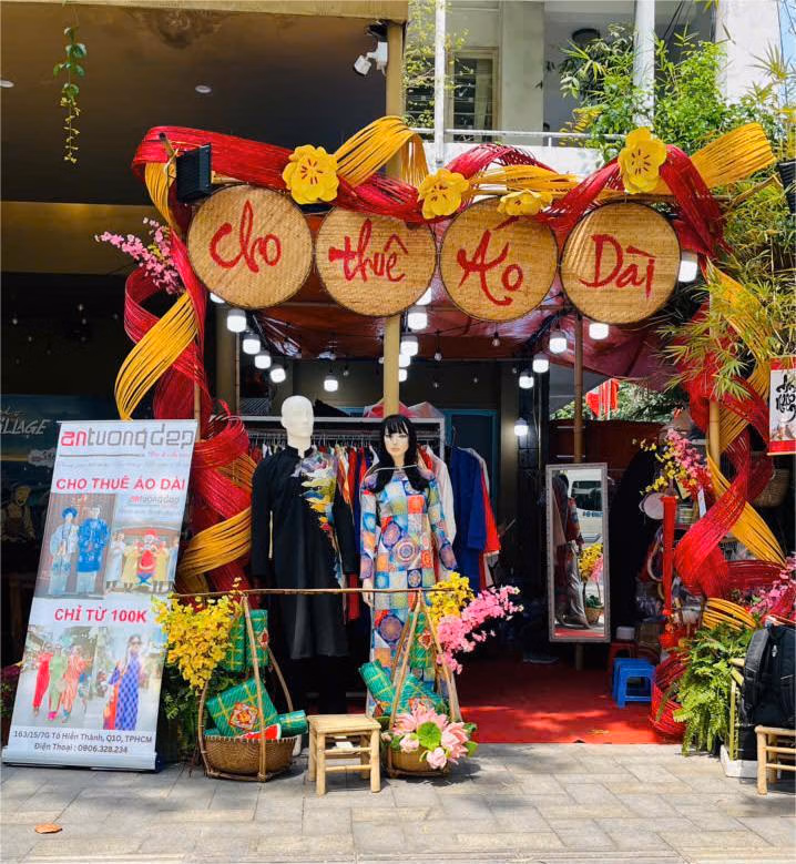 Tại khu vực trung tâm, các dịch vụ ẩm thực, mua sắm, trải nghiệm văn hóa được tổ chức đa dạng, mang màu sắc vùng miền. Nhiều gian hàng ẩm thực thu hút đông người thưởng thức, trong khi các điểm cho thuê áo dài truyền thống cũng tấp nập khách chọn trang phục, ghi lại những khoảnh khắc xuân đáng nhớ.