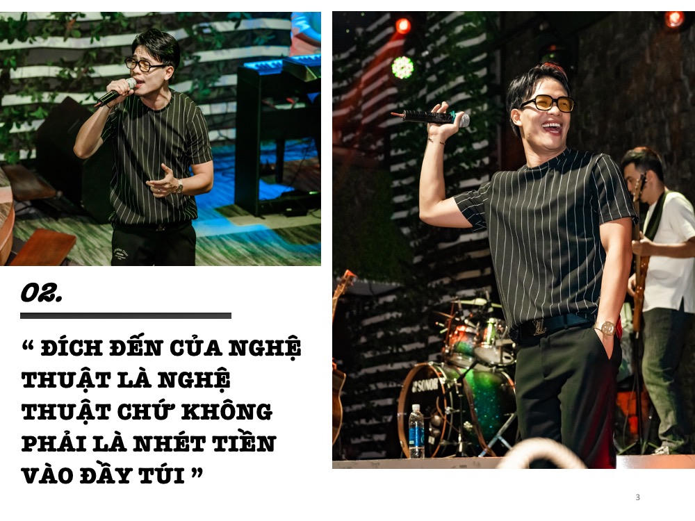 - Mốc quan trọng nhất chính là thời điểm mình nhận ra mình thích cái gì, định bắt đầu nghề đó như thế nào. Khi vào nghề rồi, tôi mới nhận ra cái tôi của mình rất cao, tức là mình không làm âm nhạc phục vụ mà muốn làm âm nhạc nghệ thuật. Ngành nghệ thuật yêu cầu rất cao về một cá tính mạnh.