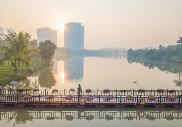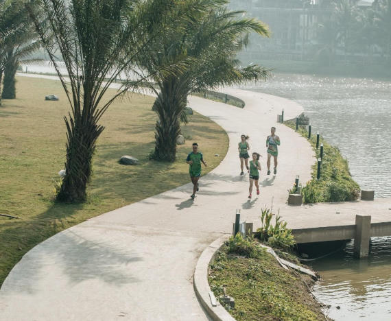 Đến Ecopark những buổi sáng sớm khi trời còn mờ sương hay lúc chiều muộn nắng phủ vàng như rót mật, bạn sẽ dễ dàng bắt gặp những cư dân Thành phố Xanh đang tập chạy thể dục nơi đây. Cũng dễ hiểu thôi khi toàn bộ khung cảnh của Ecopark cứ như sinh ra chỉ để dành riêng cho việc chạy bộ.