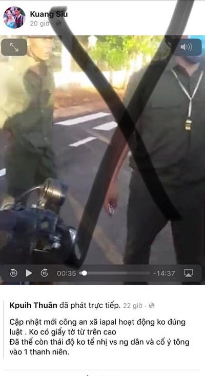 Trong đó, Kpuih Thuân đăng tin vu cáo công an xã Ia Pal có thái độ không tế nhị và cố ý tông vào nam thanh niên.